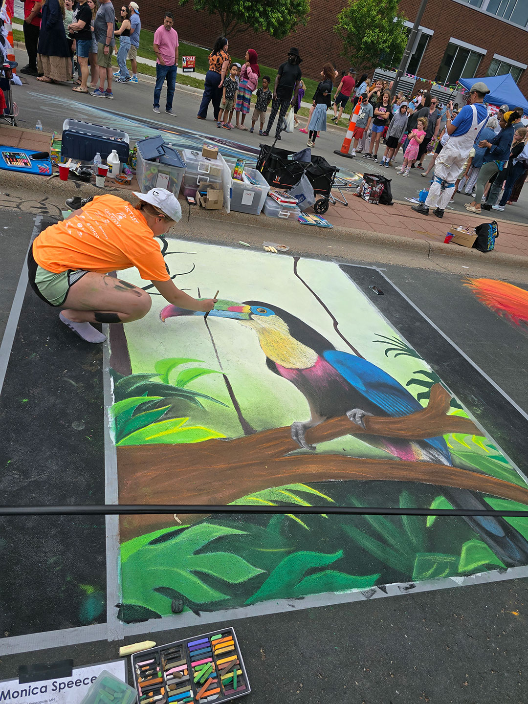 Downtown Main Street in Maple Grove was awash in color and creativity on June 7 and 8, thanks to the work of over 50 world-class artists. For a decade, Chalkfest Maple Grove has facilitated a free outdoor gallery where visitors can watch in real time as artists create stunning murals, and this year marked the event’s 10-year milestone.